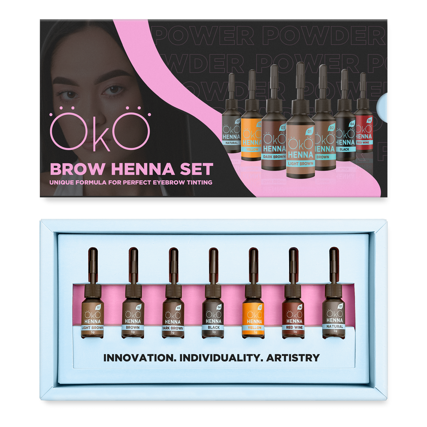 Set Henna zum Färben der Augenbrauen OKO Power Powder 7 Farben 5 g